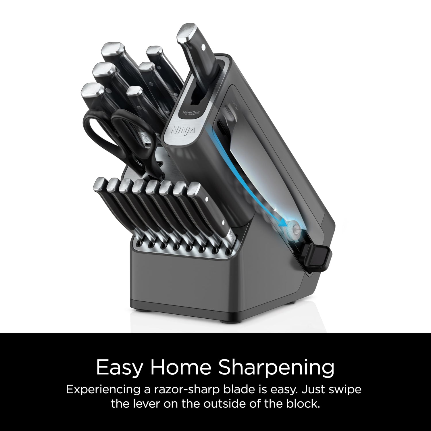 Ninja K32017 Foodi NeverDull Premium Knife System, 17 Piece Knife Block Set with Built-in Sharpener, German Stainless Steel Knives, Black